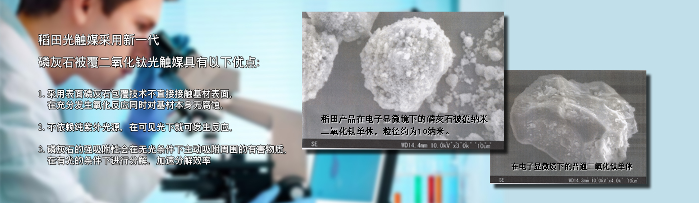 在認(rèn)識【光觸媒】之前,要先了解什么是【觸媒】。觸媒是日語,翻譯成中文叫催化劑。催化劑是能在化學(xué)反應(yīng)中加速反應(yīng)速率,而本身在反應(yīng)前后并不發(fā)生變化的物質(zhì)。光觸媒是一種以納米級二氧化鈦為代表的具有光催化功能的光半導(dǎo)體材料的總稱。它涂布于基材表面,在光線的作用下,產(chǎn)生強(qiáng)烈催化降解功能:能有效地降解空氣中有毒有害氣體;能有效殺滅多種細(xì)菌,并能將細(xì)菌或真菌釋放出的毒素分解及無害化處理;同時還具備除臭、抗污、凈化空氣等功能。 稻田光觸媒采用【磷灰石被覆納米二氧化鈦分子結(jié)構(gòu)】,具有吸附、分解、去除、無毒化的特質(zhì)。表面磷灰石包覆技術(shù)不直接接觸基材表面,在充分發(fā)生氧化反應(yīng)的同時對基材本身無腐蝕。其中的【磷灰石】成分,具有強(qiáng)大的吸附能力,可以隨時吸附空氣中的異味源、細(xì)菌、病毒等有害物質(zhì),再交由【二氧化鈦】在光源下進(jìn)行分解反應(yīng),因此能夠24小時吸附、分解